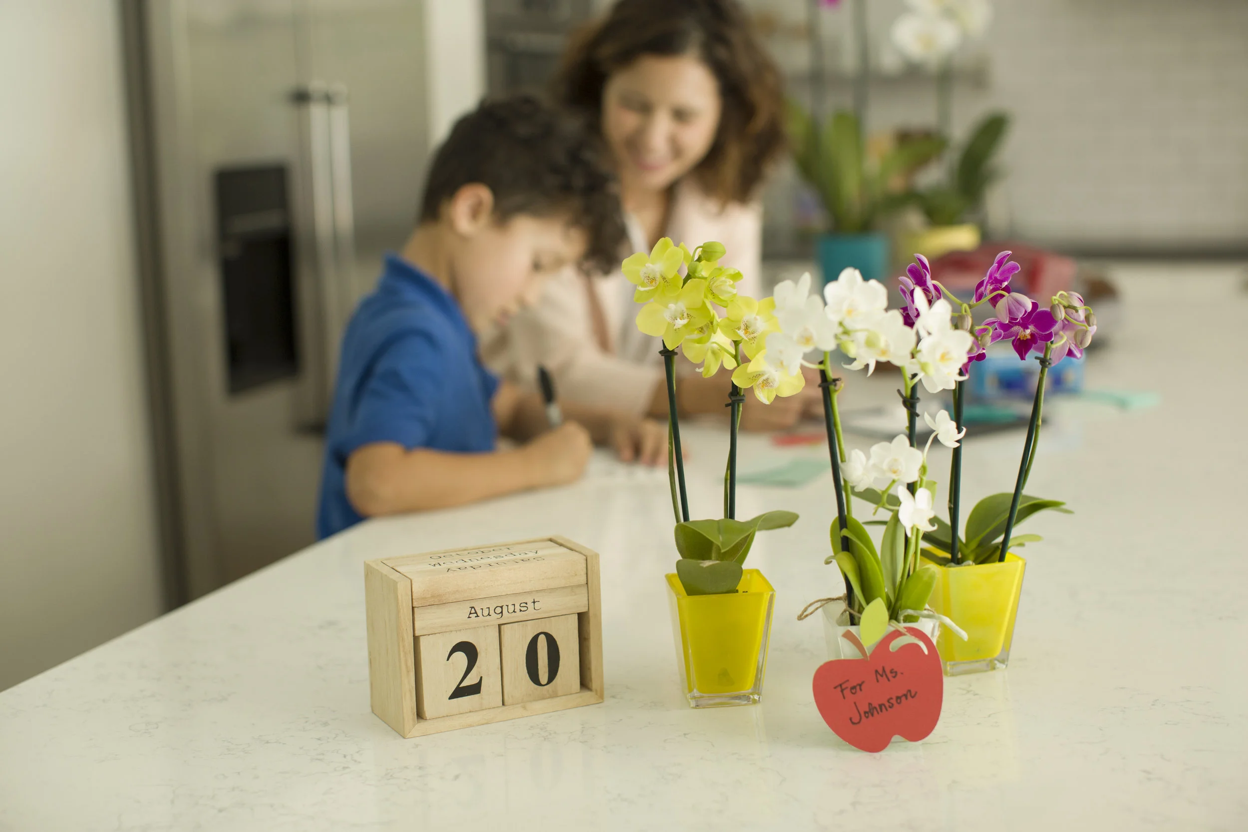 To show your appreciation, you can bring the teacher a beautiful Espresso Orchid or perhaps a Phalaenopsis Orchid. Our recent collection with decorative pots in fun primary colors are just perfect for the classroom. Gifting an orchid can be the gesture that shows teachers that you see and appreciate them. Bonus points if your child writes a sweet card to go along with it!